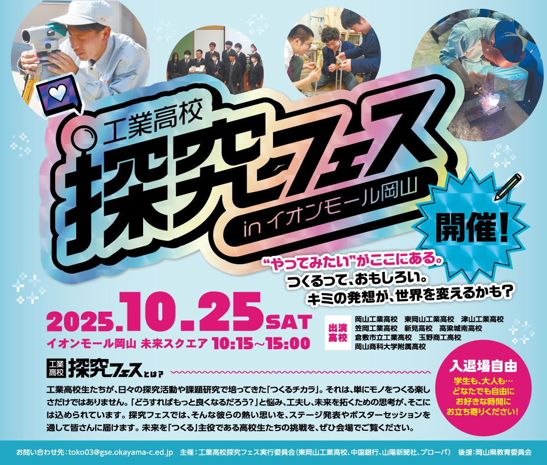 2025/10/25(土) 「工業高校探求フェス in イオンモール岡山」に出展いたします。